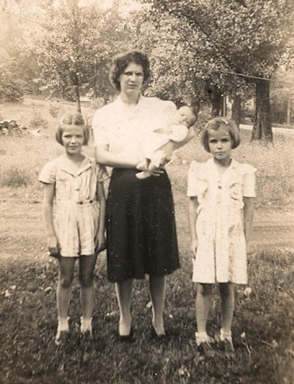 Gladys with newborn Elaine and twins Jane and Joan, 1944